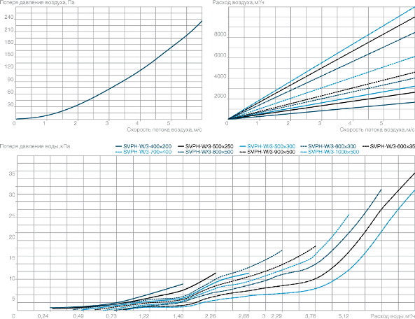 Методика обуславливает задание исходных величин, таких как: расход воздуха, температура воздуха на входе, расчетный температурный перепад воды, и получение неизвестных величин: температуры воздуха на выходе, теплопроизводительности обогревателя, падения давления воды и воздуха, необходимый расход воды. При помощи аэродинамических и термодинамических диаграмм можно получить все эти величины.
